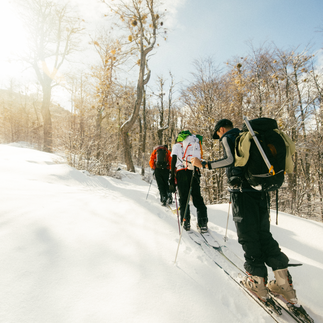 We hiked for two hours through a beautiful forest until we reached a stunning lookout point. From there, we could see the mountains up close, feeling that we were truly getting nearer to them. Standing there, we couldn’t wait to get even closer – the urge to ski those slopes was stronger than ever.